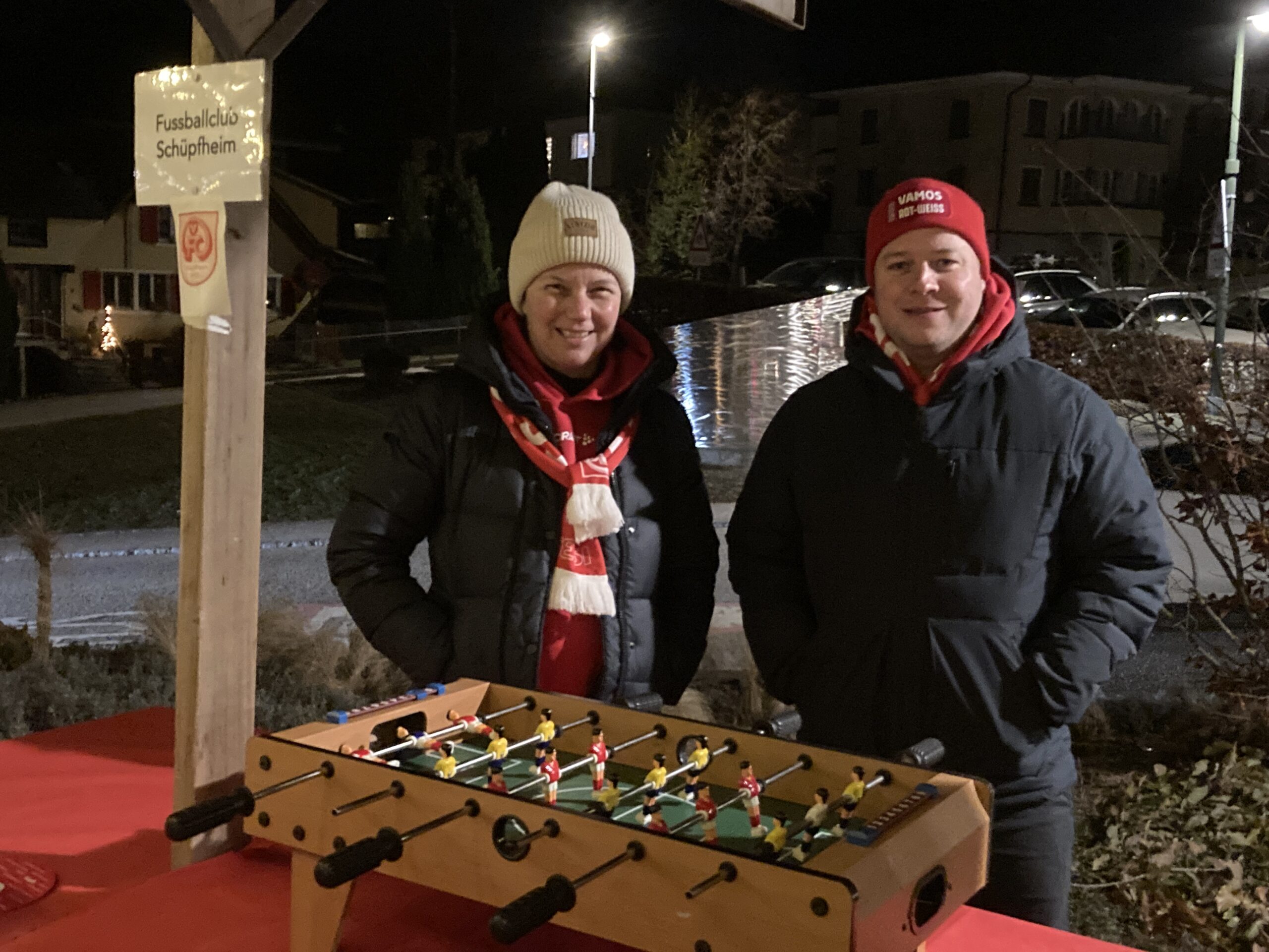 Unser Stand wurde trotz der kalten Biese rege besucht und bot Gelegenheit für interessante Gespräche und schöne Begegnungen. In ungezwungener Atmosphäre tauschten sich Besucherinnen und Besucher mit unserem Präsidenten Silvan Emmengger und der Aktuarin Silvia Hodel über den Fussball, das Vereinsleben und aktuelle Themen rund um den FC Schüpfheim aus. Das grosse Interesse und die positiven Rückmeldungen aus der Bevölkerung haben uns sehr gefreut.