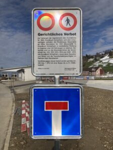 Für die Privatstrasse „Moosmättili“ wurde ein gerichtliches Fahr- und Betretungsverbot erlassen.